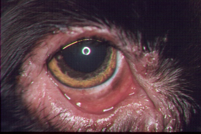 Progressive retinal atrophy, or PRA as it is frequently termed, is a long recognized, hereditary, blinding disorder. It is inherited as a simple autosomal recessive in most breeds.PRA is a disease of the retina. This tissue, located inside the back of the eye, contains specialized cells called photoreceptors that absorb the light focused on them by the eye’s lens, and converts that light, through a series of chemical reactions into electrical nerve signals. The nerve signals from the retina are passed by the optic nerve to the brain where they are perceived as vision. The retinal photoreceptors are specialized into rods, for vision in dim light (night vision), and cones for vision in bright light (day and color vision). PRA usually affects the rods initially, and then cones in later stages of the disease. In human families, the diseases equivalent to PRA (in dogs) are termed retinitis pigmentosa.In all canine breeds PRA has certain common features. Early in the disease, affected dogs are nightblind, lacking the ability to adjust their vision to dim light; later their daytime vision also fails. As their vision deteriorates, affected dogs will adapt to their handicap as long as their environment remains constant, and they are not faced with situations requiring excellent vision. At the same time the pupils of their eyes become increasingly dilated, in a vain attempt to gather more light, causing a noticeable "shine" to their eyes; and the lens of their eyes may become cloudy, or opaque, resulting in a cataract.Diagnosis of PRA is normally made by ophthalmoscopic examination. This is undertaken using an instrument called an indirect ophthalmoscope, and requires dilatation of the dog’s pupil by application of eyedrops. Broadly speaking, all forms of PRA have the same sequence of ophthalmoscopic changes: increased reflectivity (shininess) of the fundus (the inside of the back of the eye, overlain by the retina); reduction in the diameter and branching pattern of the retina’s blood vessels; and shrinking of the optic nerve head (the nerve connecting the retina to the brain). These changes occur in all forms of PRA, but at different times in the different breed-specific forms. Usually by the time the affected dog has these changes there is already significant evidence of loss of vision.